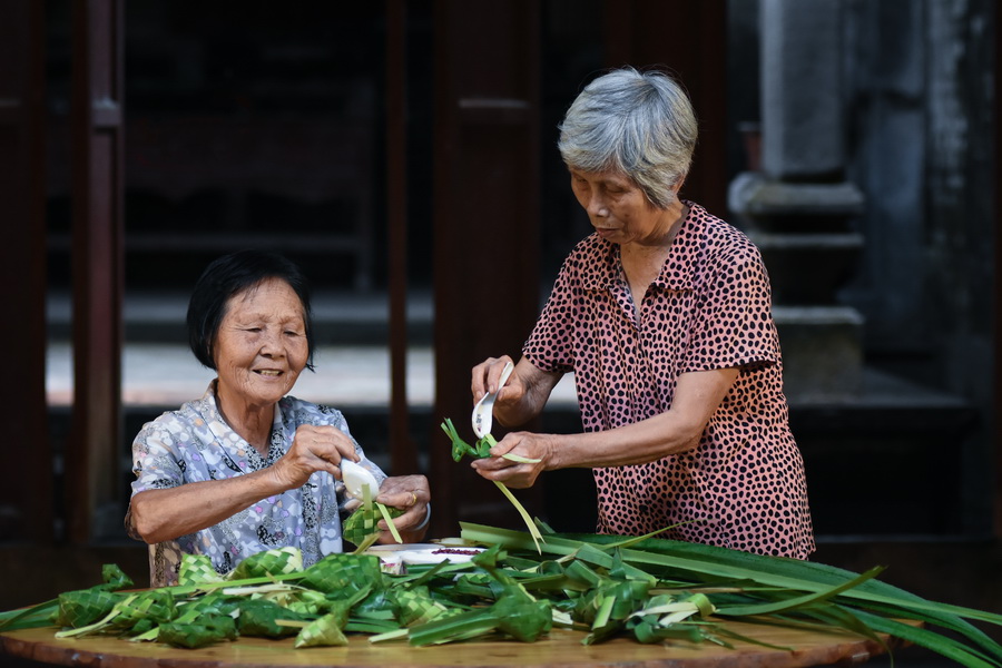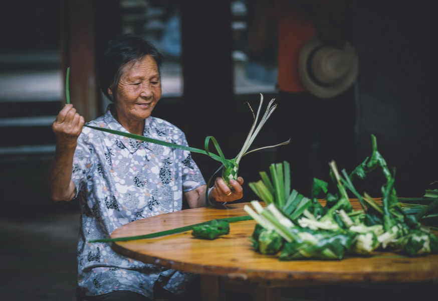 家里没有什么肉,阿花就把泡好的糯米、煮熟的绿豆(去皮)、炒香的花生芝麻,塞了进去,放到锅里蒸煮。不一会儿,满屋子香气四溢。