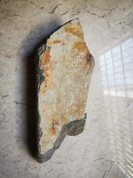 他从提包里拿出一个纸包,小心翼翼地打开,一块石头跃入眼帘。这石头,跟我儿时在老家玩耍的石头没什么两样,看起来普普通通,摸起来平平凡凡,没有田黄石、鸡血石那些名贵石头的手感和色泽。