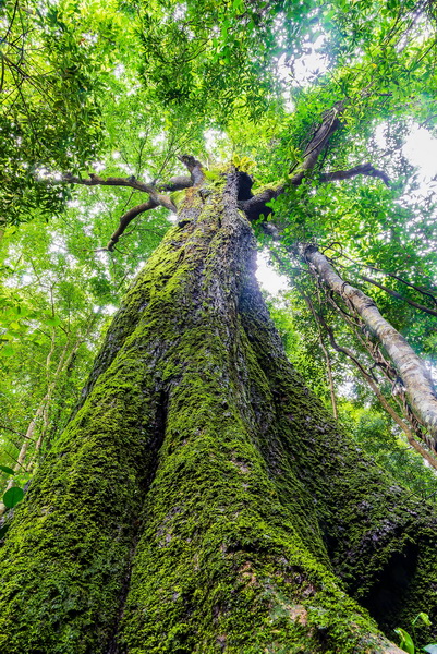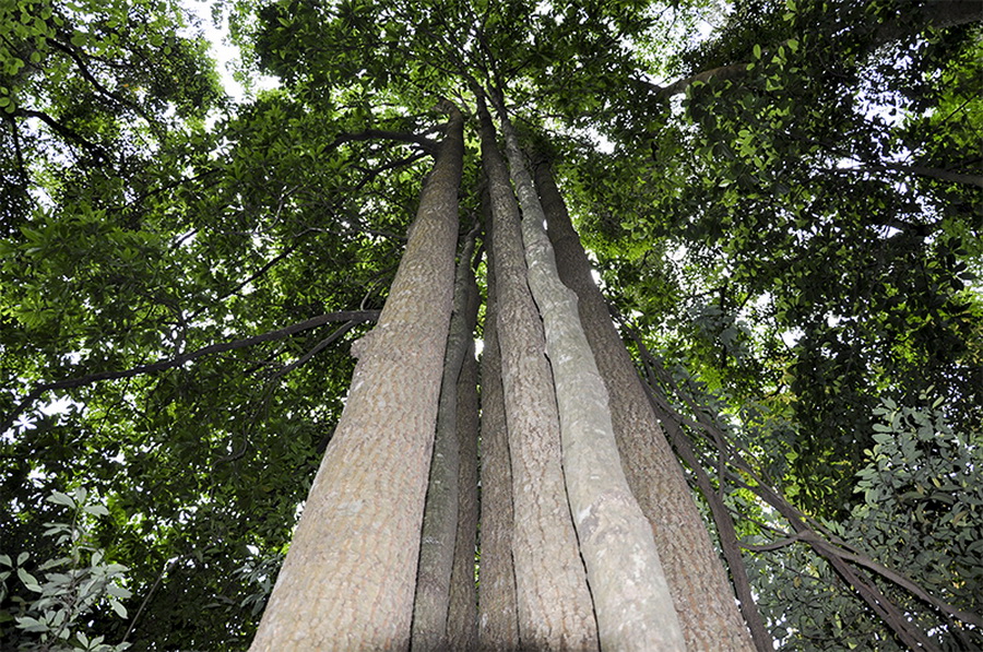 在神仙滩附近,我们见到了原始野生格木林。这些格木,大的至少有十多米高,树枝遮天蔽日。或许您没听说过格木,但您家厨房的砧板说不定就是格木做的。格木的材质坚硬耐腐,又称为“铁木”。铁木绝非浪得虚名。广西容县有座真武阁,全部用格木建成的,从1573年至今,经受多次地震和狂风袭击仍完好无损,可见格木的材质非常坚固耐用。格木是国家二级重点保护植物。成片的野生格木林非常罕见,而在同乐大山里,却时不时可以见到。