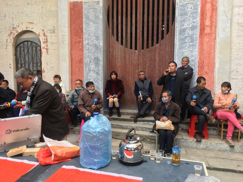 “乡亲朋友来各方,贺寿歌台咁兴旺,祝贺寿星身健壮,你和我唱耍歌堂。”