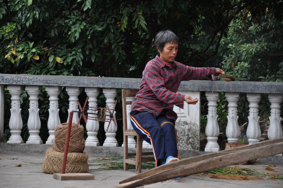 刚开始接触民间手工技艺时,我以为很容易,看看就懂,摸摸就会,没难度,即使没人学也不觉得可惜。可是在大湾镇亲眼看到横经席的制作过程后,我被传承人的认真态度和那份坚守深深地感动了,也推翻了我之前那些无知的想法。