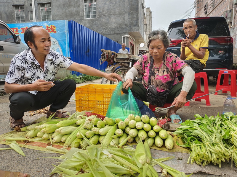 在商贸城市场,更是热闹无比。卖米的,一列排开;卖山药的,聚集在一起;卖菜的,齐齐整整摆放着;卖家禽的,围成几个圈;卖衣服的,一行一行又一行。高州人运了一车鸡蛋过来,广西仔推来了一箱箱腐竹、红薯米粉,西江对面的德庆阿伯挑来了一担大米。
