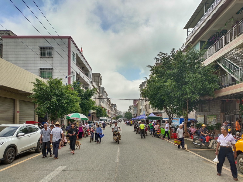 人工的声音,智能的录音,比的是分贝。各种叫卖吆喝声、讨价还价声、逛街会友的招呼声、机动车喇叭“嘀嘀”声……汇成了一首喧闹又动感的趁圩交响曲。