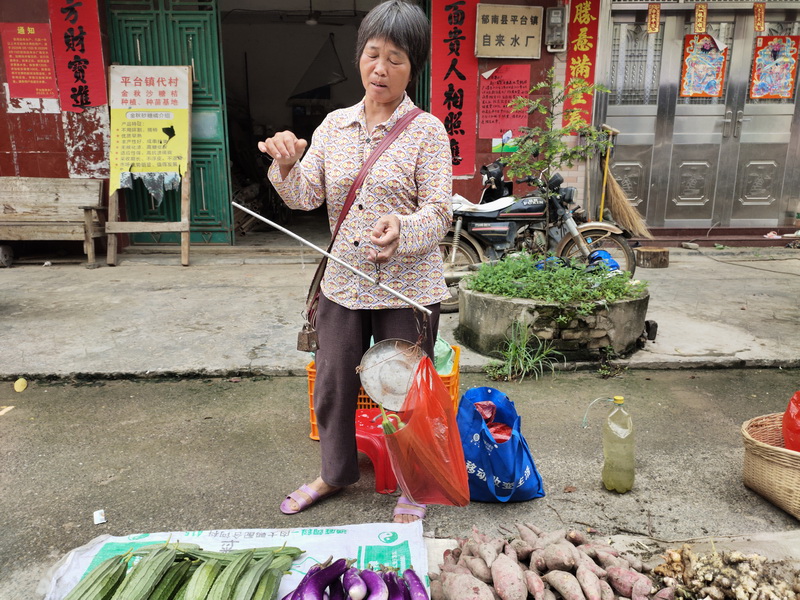 挤就挤吧,慢慢逛,细细看。小媳妇一边和朋友们微信视频,一边向他们介绍郁南土特产,有适合的就买,不中意的看看也无妨,大家对她这种“行走的代购”纷纷点赞。