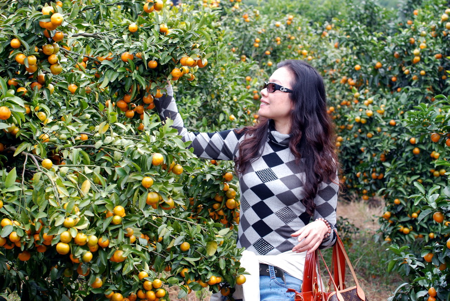 “树树笼烟疑带火,山山照日似悬金。”行走在郁南的土地,留连于绿水青山,忘情于绿意萌动、生命旺盛的桔林,我思绪飞扬:等到十一月中旬沙糖桔成熟时,郁南是金黄色的。在金黄色的阳光下,金黄色的田野,金黄色的沙糖桔园,连西江和南江的河水也泛着金光,而那一树树的沙糖桔,仿佛是用金子铸成的。远远望去,在房前屋后、在田野山坡、在公路旁边、在江河岸边,黄澄澄、金灿灿,一片片耀眼的颜色,人们神采飞扬,采摘着金色鲜艳的柑桔,到处是丰收的喜悦,到处是开心的笑声,连同空气中也飘荡着香甜的味道,这是一幅多么美妙而动人的新农村图画啊。