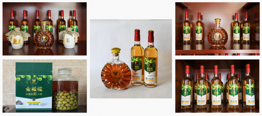 进入会客厅,看到靠左的样品陈列柜上摆放着一长溜的锡兰橄榄系列产品。装着橄榄酒的瓶子造型极具特色,古朴中透着厚重。产品说明里标注着一行特别醒目的字:100%原果发酵。这是一种自信,更是一种承诺。一则关于该公司的简介上写着:“云浮市德才创新农业科技有限公司,是郁南县锡兰橄榄标准种植示范基地项目。公司从世界百多个橄榄品种中筛选出珍稀橄榄品种,依托本地的肥沃土壤、气候及无污染的优良环境,以公司加农户形式,发展种植12000多亩,是一间集橄榄种植、加工、研发一条龙的农业产业化企业。公司致力于珍稀橄榄系列产品的研发,拥有一批高学历专业技术队伍,并积极与广东省仲恺农业工程学院等高校合作,致力于对功能性的橄榄保健饮料开发,已成功开发出橄榄酒、橄榄醋、橄榄茶等“橄榄系列”。本项目产品能促进人体消化系统、神经系统、血液循环系统机能发育,增强免疫功能,并具有降低胆固醇、消炎润喉、清热解毒和预防‘三高’之功效,属绿色保健品。”