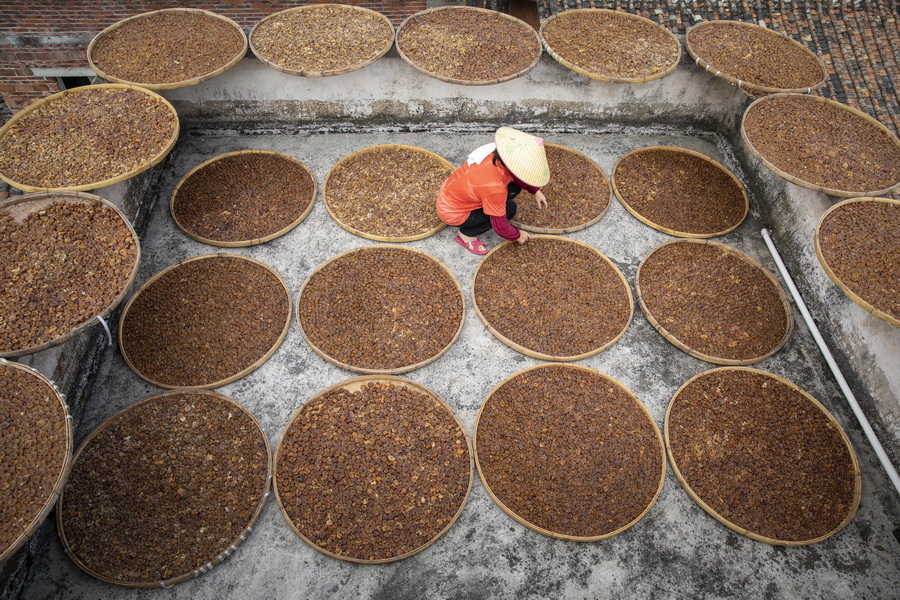 当你远远地望向一片枣林,就能看见一颗颗白枣你侬我侬似的相互依靠着,个个如鸽子蛋大小,有的通体青绿,有的青中泛黄,仿佛在开会,又仿佛在窃窃私语。这是罗旁白枣最甘甜的时候,成熟的枣子便可以收摘了。在果白叶绿的枣林里,不时可以看见一些男女枣农在欢快地劳作,他们一边采摘枣子,一边愉快地唱着山歌。歌声你唱我和、此起彼伏,被风带向遥远的地方,好一派“遍地繁枝垂玛瑙,四乡宠韵唱清平”的丰收景象。