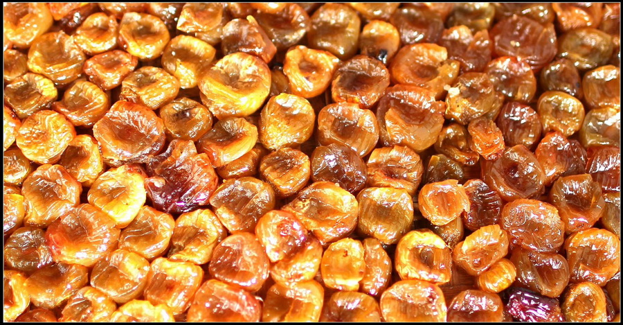 蜜枣色泽金黄,入口松化清香,甜而不腻,具有清心润肺、开胃消滞、养颜保健之功效,是口尝之佳果和煲汤的理想佐料,深受人们青睐。