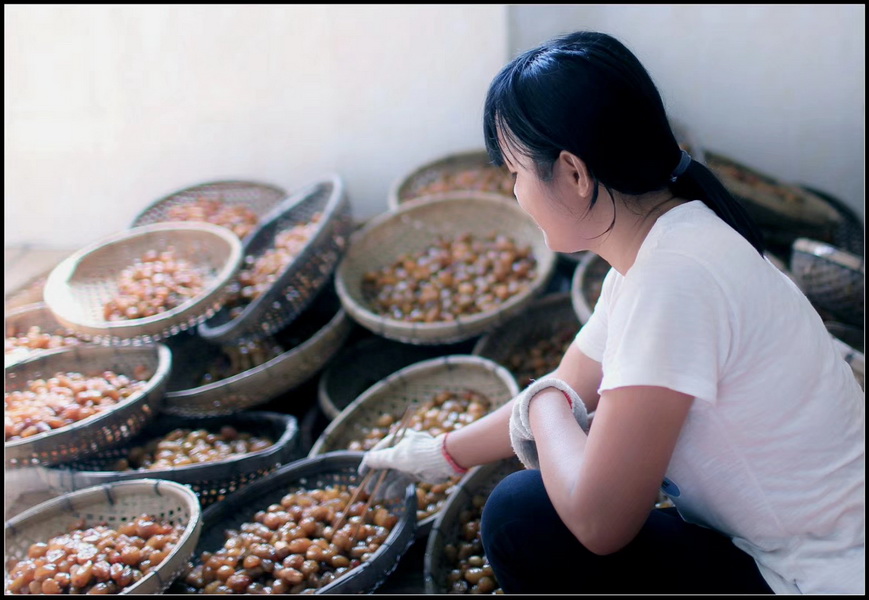 听了这凄婉的爱情故事,我不禁望着眼前挂满果实的白枣树出神。罗旁种植白枣的历史悠久,素有“枣乡”之称。罗旁在西江沿岸,属丘陵地带,水陆交通方便。这里土地肥沃,雨量充沛,泉水中含有丰富的锰、硫、铁等元素,沙质土壤非常适合枣树的生长,自古就是白枣的天然生长之地,或在路边,或在屋旁,或在院中,或在江岸,或在桑田与其它作物间种。